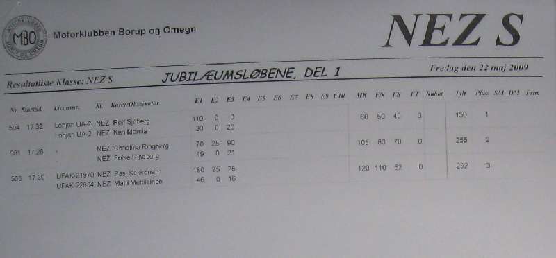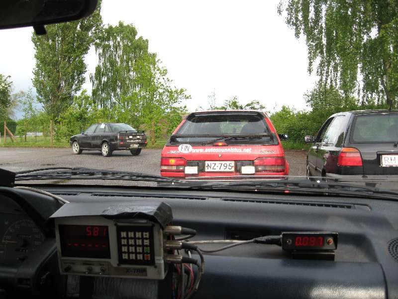 Ruotsin läpi huristeluun on varattava 6...7 tuntia, Tanskan puolelle pääsemme iltapäivällä. Kisaan lähdemme - onneksi - viimeisten lähtijöiden joukossa 17:32. Oletin valvomisen takia olevani vajaakuntoinen joten ilmoittauduimme "tukireitille" eli lyhyelle radalle. Kait siinäkin saa palauteltua tarpeeksi mieliin tanskalaista reitinmäärittelyä - onhan alla kuitenkin 760 kilometriä autossa istumista. Nyt ollaan tultu 450 kilometriä pilvisen, sateisen ja aurinkoisen sään vaihdellessa. Tankki kannattaa täyttää Helsingborgissa, Ruotsissa bensan litrahinta on 1,18 kun taas Tanskassa 1,35. Jos siis internetin ihmeelliseen maailmaan on uskomista.