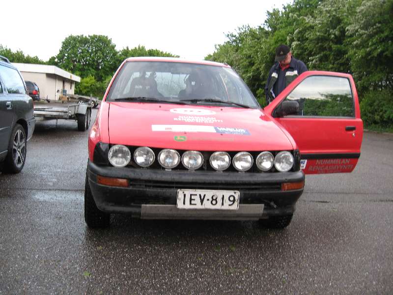 Perjantaiharjoitukseksi kokemamme reitti oli aivan tarpeeksi vaativa ja pitkä, lauantaina on sitten uudet kuviot. Pientä laittoa olisi taas, sisäpuhaltimesta on "täysillä" asento hyytynyt (oli kiva kun ajettiin osa kisasta vesisateessa huuruisessa autossa) ja maaliin päästyämme totesimme yhden renkaan tyhjäksi. Mutta ainakin nyt on aikaa ottaa kunnon unoset.