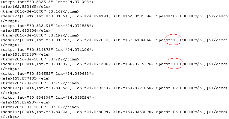 Hieman ihmetyttää, että Raunimo-Itäkodeksen ja Salojen käytössä olleissa GPS-laitteissa ei ole lainkaan dataa vuodelta 2016; liekö jäänyt laite käynnistämättä? Ohje kuuluu: laite on päällä kun kytkin näyttää pallukkaa (ripustusnaruun päin) ja sininen satunnainen valonvälähdys kertoo GPS-tiedon vastaanotosta. Sisätiloissa laite on varsin passiivinen, autossa se tulee sijoittaa ikkunan lähelle, esim. hattuhyllylle tai kojelaudalle; meillä se roikkui takapenkin kauhukahvasta. Joku kyseli mitä "muut" sarake tulosluettelossa tarkoittaa. Siihen tulevat mahdolliset miinuspisteet GPS-datan perusteella kilpailijan kuulemisen jälkeen sekä tuplapistekohteiden lisäpisteet ja miinukset. Tuplapistekohteissahan käymättä jättäminen merkitsee sen arvon verran miinuksia, käynnistä taas saa tuplapisteet.